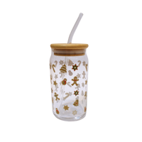 Glas med sugerør i kagemand design (450 ml) er en festlig og funktionel tilføjelse til julens hyggestunder. Glasset er pyntet med små julemotiver som kagemænd, julekugler og stjerner, der straks skaber en varm og legende stemning. Med det medfølgende sugerør og det smukke låg i bambus er glasset både praktisk og dekorativt, perfekt til servering af alt fra juice til julecocktails. Den rummelige størrelse på 450 ml gør det ideelt til både hverdag og festlige anledninger. Dette glas er en skøn måde at tilføje lidt ekstra juleglæde til borddækningen og vil uden tvivl blive et hit hos både børn og voksne.