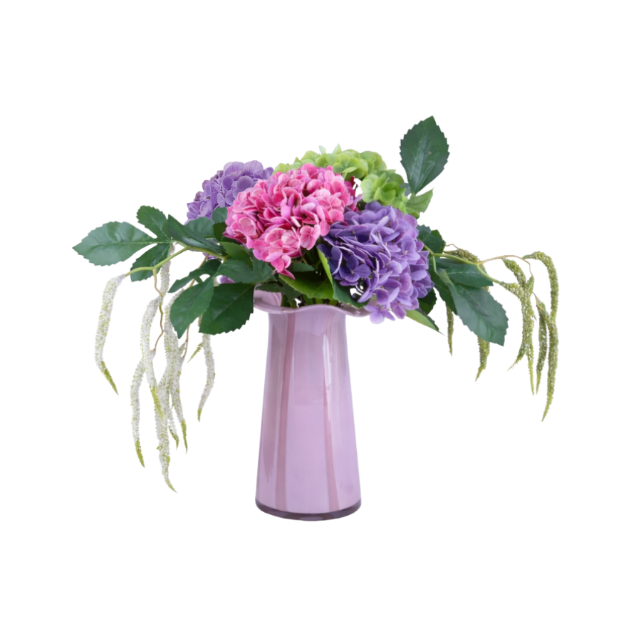 Evighedsbuket Lyserød Hortensia m. Flerfarvede Blomster