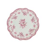 Middagstallerken DINNA i bordeaux bringer charme til bordet med sit romantiske blomsterprint og fine bølgede kant. Designet kombinerer nostalgi og moderne æstetik og gør den perfekt til hverdag og festlige lejligheder. Brug den som en del af et dækket bord med resten af DINNA-serien for et stilfuldt look, der skaber varme og personlighed i din borddækning.