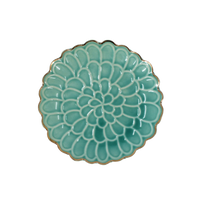 Tilføj et frisk pust til din indretning med Keramik Bakke BENIT i en smuk turkis farve. Den er formet som en blomsterkrans med elegante kronblade, og den blanke glasur fremhæver det detaljerede mønster, mens den gyldne kant giver et eksklusivt touch.