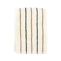 Dette håndklæde med striber i creme, grå og brun er lavet af 100% bomuld, hvilket gør det blødt, absorberende og behageligt mod huden. Med målene 50x100 cm har det en ideel størrelse til både badeværelse og spa.