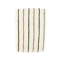 Dette badehåndklæde med striber i brun og grå er lavet af 100% bomuld, hvilket gør det blødt, absorberende og behageligt mod huden. Med målene 70x140 cm har det en ideel størrelse til både badeværelse, strand og spa.