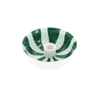 Den runde lysestage ECLIN i blå og grøn er et stilfuldt og dekorativt element, der tilfører personlighed til din boligindretning. Med sit unikke design og de håndmalede, bølgende mønstre i grønne nuancer på en hvid baggrund skaber lysestagen et dynamisk og moderne udtryk. Den måler Ø13,3 x 5 cm og er ideel til almindelige kronelys. Den brede, skålformede base giver ikke kun et elegant look, men sikrer også stabilitet og opsamler eventuelt dryppende stearin. Perfekt til at skabe en hyggelig atmosfære på spisebordet, i vindueskarmen eller på en reol.