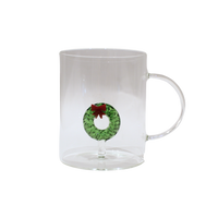 Glas med julefigur - Julekrans (450 ml) er et unikt og festligt drikkeglas, der bringer ekstra julestemning til borddækningen. Inde i glasset findes en dekorativ lille julekrans med rødt bånd, som giver en charmerende og overraskende detalje. Glasset har en rummelig kapacitet på 450 ml, hvilket gør det ideelt til drikke gennem hele december.
