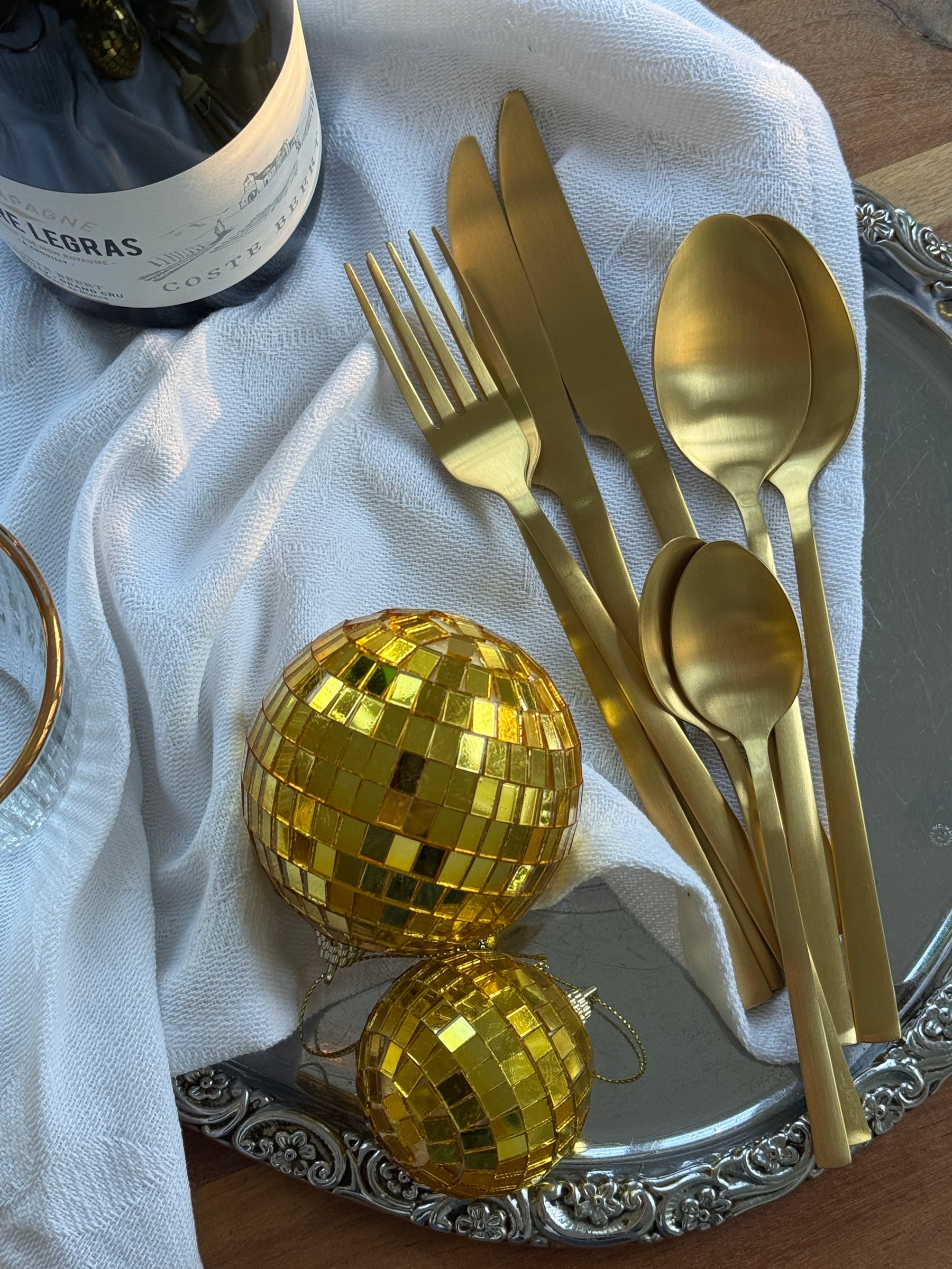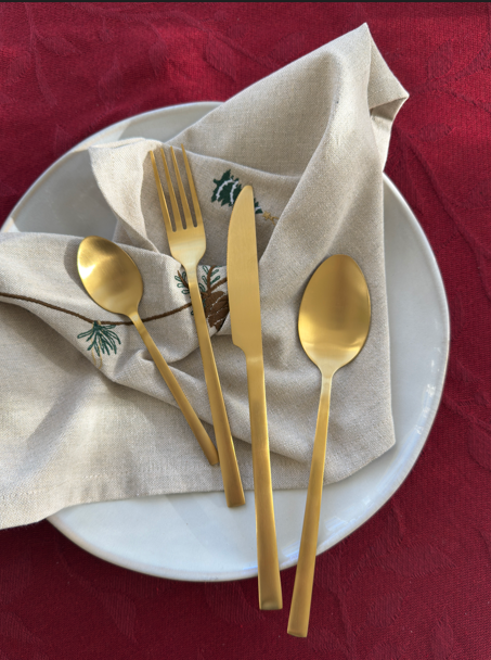 Dette luksuriøse bestiksæt i guld farve tilføjer en elegant touch til enhver borddækning. Sættet indeholder 16 dele, bestående af 4 knive, 4 gafler, 4 spiseskeer og 4 teskeer, hvilket gør det ideelt til en middag for fire personer. Hvert stykke er belagt med en smuk gylden finish, der ser fantastisk ud på middagsbordet. Bestikket er velegnet til både hverdagsbrug og specielle lejligheder. Med dette bestiksæt kan du imponere dine gæster og tilføje et strejf af luksus til dine måltider.