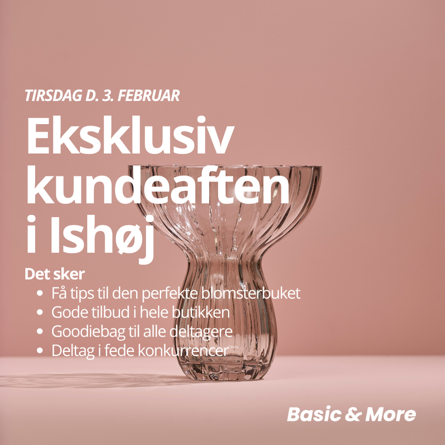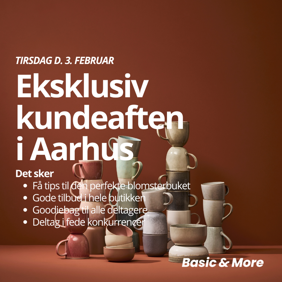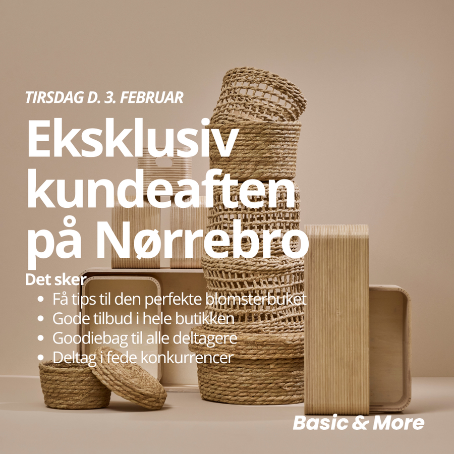 Tirsdag d. 3 februar inviterer til en hyggelig aften fyldt med inspiration, gode tilbud og fede konkurrencer i vores butikker over hele landet. Der er begrænset antal billetter, så skynd dig at købe din billet allerede i dag til din lokale Basic & More butik!