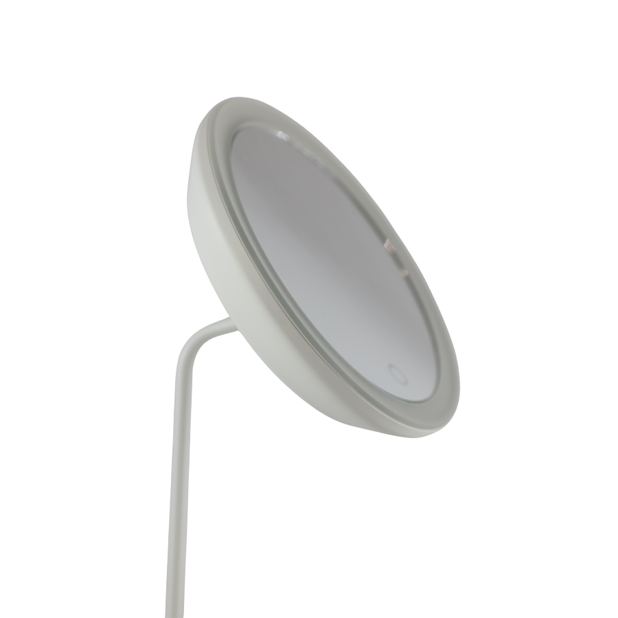 Zone Denmark bordspejl med 5x forstørrelse og lys i hvid er den perfekte kombination af funktionalitet og stilrent design. Spejlet giver en krystalklar forstørrelse, der gør det ideelt til makeup og hudpleje. Med tre justerbare lysnuancer kan du tilpasse belysningen efter behov - fra naturligt dagslys til blødere toner, så du altid får den rette stemning. Det enkle, hvide design passer elegant ind på badeværelset, soveværelset eller makeupbordet og tilfører et moderne touch til indretningen.