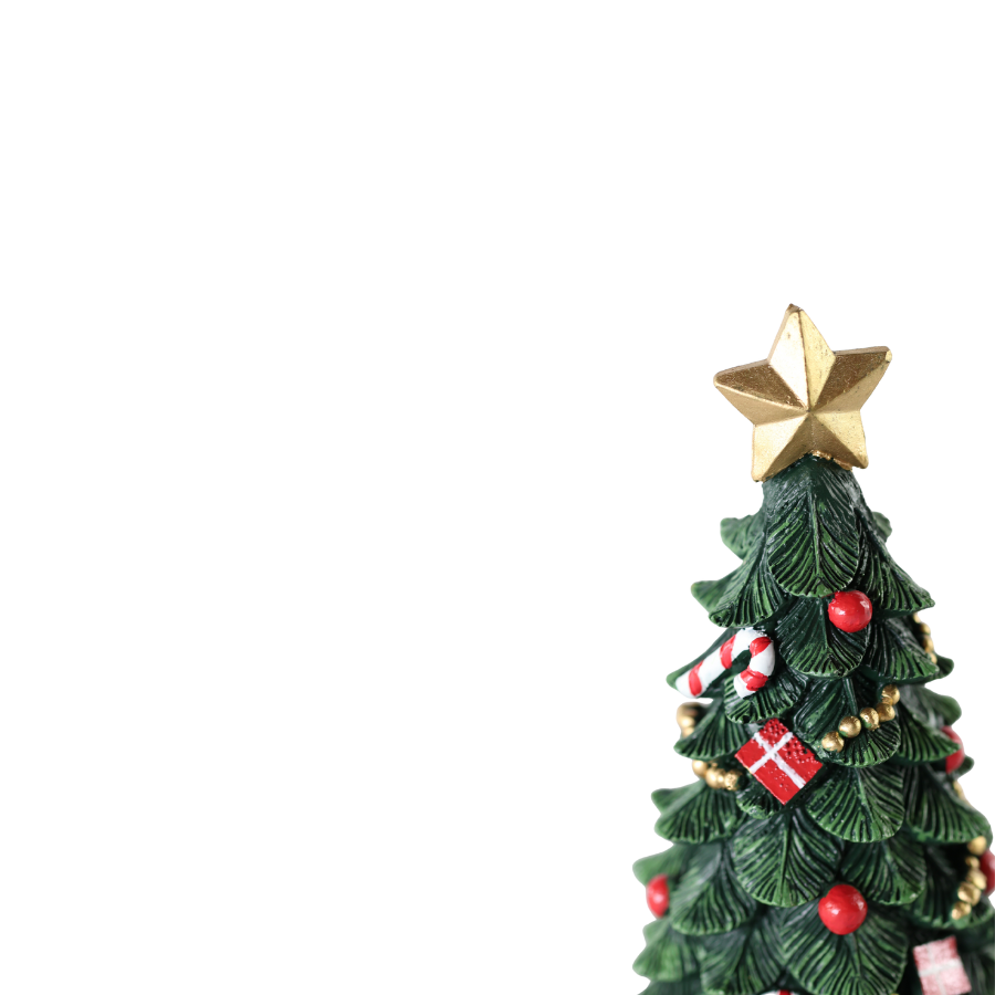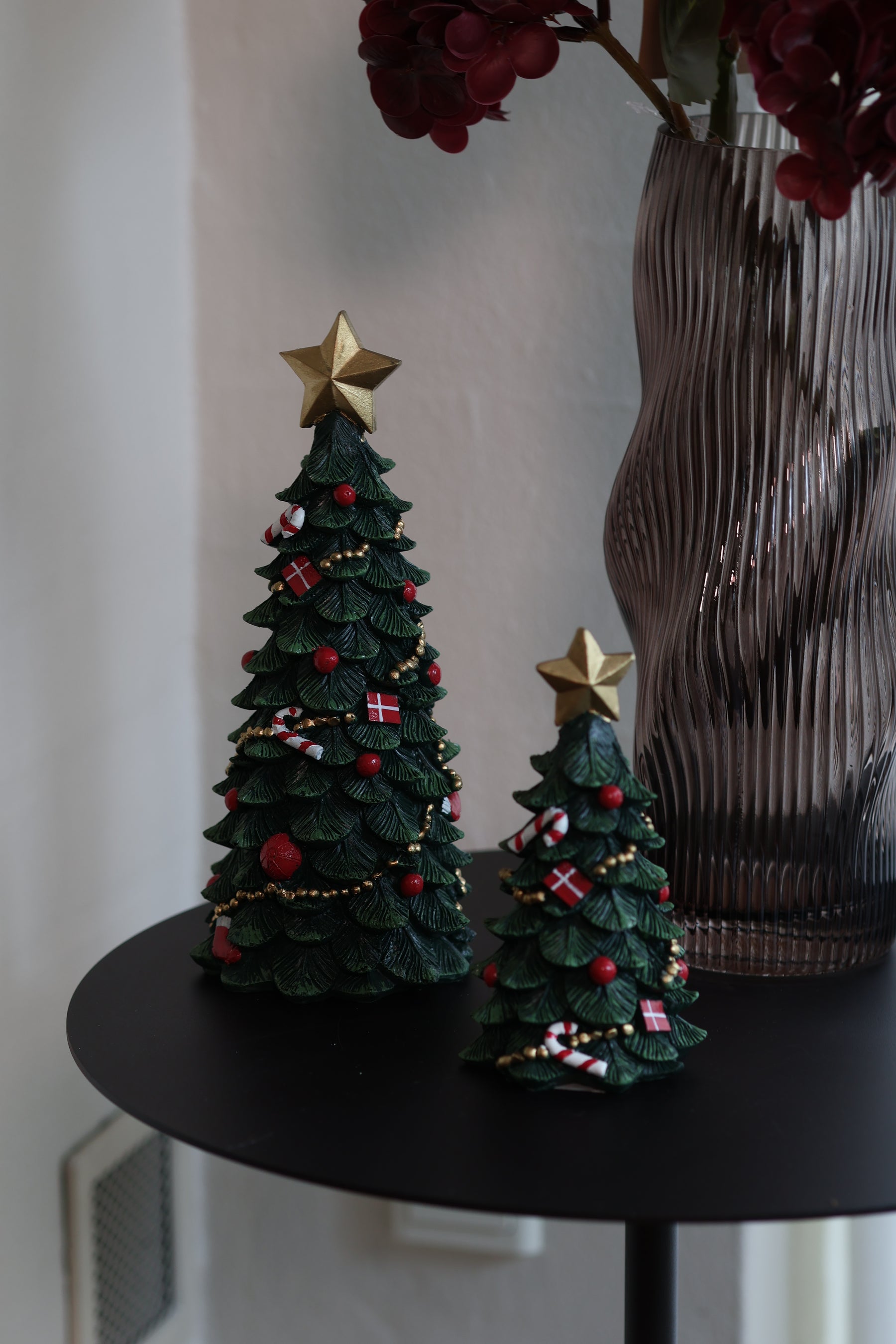 Juletræ med pynt i polyresin (H15 cm) er en fin og detaljeret julefigur, der bringer hygge til enhver opstilling. Træet er dekoreret med røde kugler, gaver, slikstokke og en elegant guldfarvet guirlande, mens en gylden stjerne kroner toppen. Den kompakte størrelse gør det perfekt til vindueskarmen, sofabordet eller som en del af en større juledekoration. Polyresin-materialet sikrer holdbarhed og et smukt finish, så du kan nyde den festlige stemning år efter år.