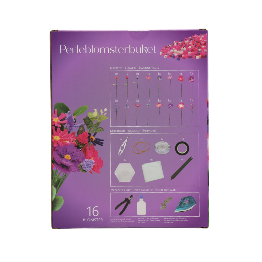 Gerbera Perleblomst buket er et kreativt og farverigt sæt, hvor du kan samle din egen buket med 16 unikke blomster lavet af perler. Buketten emmer af leg og fantasi med et mix af levende farver og smukke detaljer, der gør den til en skøn dekoration i hjemmet. Perfekt som gaveidé eller hyggeligt projekt til både børn og voksne, der elsker kreativ fordybelse og personlig indretning. En perlebuket, der spreder glæde og farve i enhver krog af hjemmet.