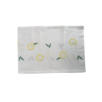 Bordløber med Citron FREDERIKA på 30x180 cm er et friskt indslag til dit spisebord. Den hvide bund er dekoreret med et let mønster af gule citroner og grønne blade, der giver en lys og indbydende stemning til både hverdag og festlige lejligheder. Bordløberen er fremstillet i et blødt materiale, som gør den både dekorativ og praktisk i brug. Med sit enkle og legende design passer den perfekt til både indendørs og udendørs borddækning og kan nemt kombineres med servietter, dækkeservietter eller andet tilbehør for at skabe et fuldendt og harmonisk udtryk.