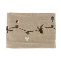 Juledug med broderi (140x270cm) tilføjer et elegant touch til din juledekoration. Denne smukt designede dug er perfekt til at skabe den rette stemning ved festlige måltider og samvær i juletiden. Broderiet, der pryder dugen, giver et særpræg af håndværk og kvalitet, hvilket gør den til et trofast indslag på spisebordet år efter år. Den generøse størrelse sikrer plads til både mad og dekorationer, og stoffet er nemt at vedligeholde, så du kan bruge mere tid på at nyde højtiden. Kombinationen af stil og funktion gør denne juledug til en uundgåelig del af dit interiør, der vil imponere dine gæster. Forvandl dit hjem til et festligt fristed med denne smukke juledug, der skaber varme minder og glæde omkring bordet. Gør din juledekoration fuldendt med dette skønne stykke interiør.