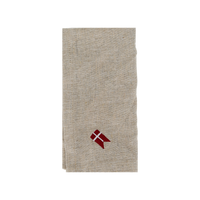 Tilføj et stilfuldt præg til din borddækning med denne elegante serviet med broderet Dannebrog. Med målene 40x40 cm er servietten både praktisk og dekorativ, fremstillet i et blødt og slidstærkt materiale. Det fine broderi af det danske flag skaber et klassisk og tidløst udtryk, der passer perfekt til højtider, fødselsdage, nationaldage eller andre særlige anledninger. Servietten er let at vaske og genbruge, hvilket gør den ideel til både festlige arrangementer og hverdagsbrug.