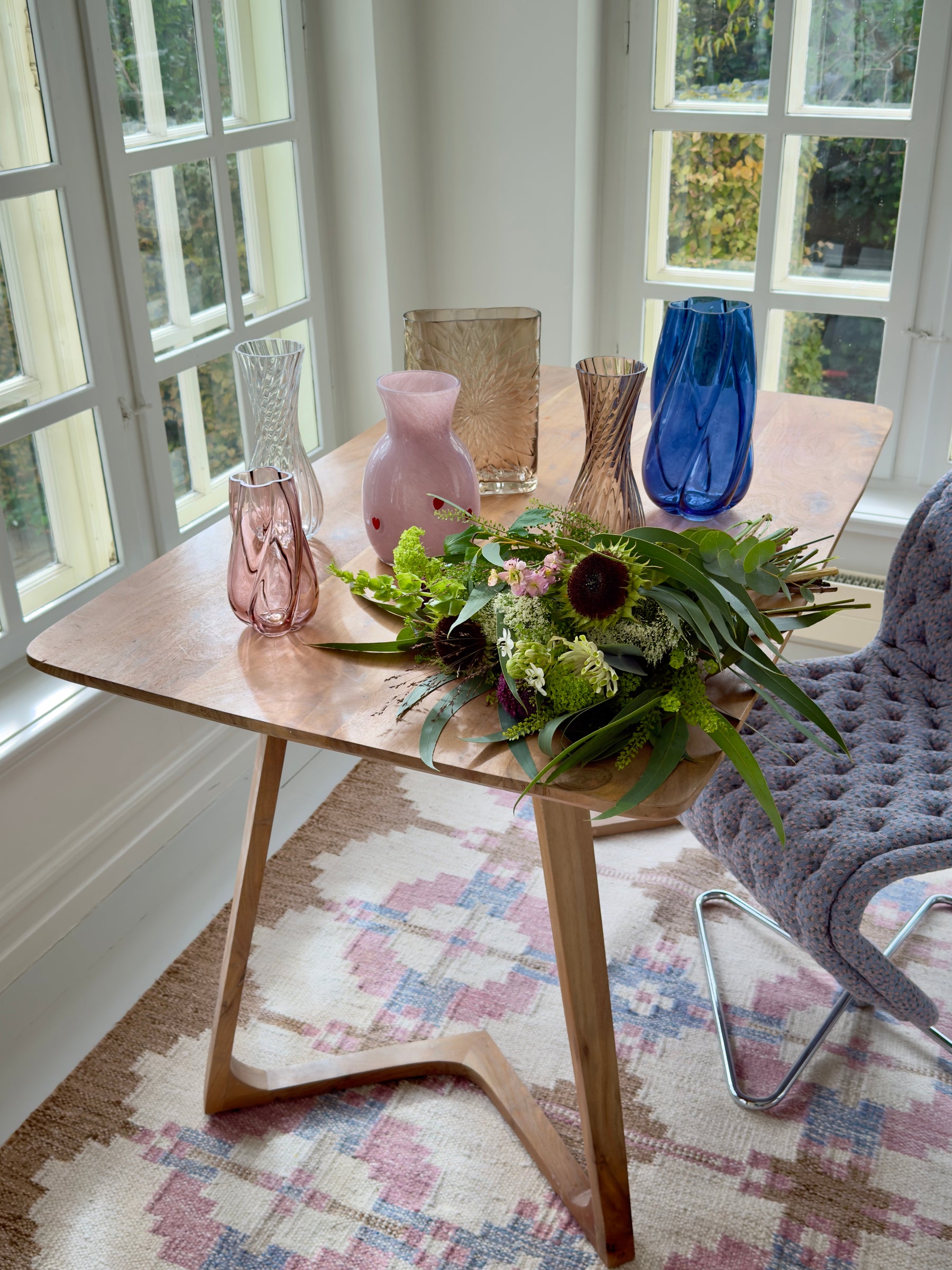 Glas Vase MEVA i blå har et moderne design, der passer smukt ind i forskellige indretninger. De bløde, snoede linjer og den dybe blå farve giver vasen et elegant udtryk, som tilfører rummet lidt ekstra karakter. Med målene 15,5x17x28 cm har den en praktisk størrelse, der gør den velegnet både til friske blomster, tørrede buketter eller som dekorativ detalje alene. Placér den på spisebordet, i vindueskarmen eller på en hylde, og lad den bidrage med et stilfuldt præg i hjemmet.