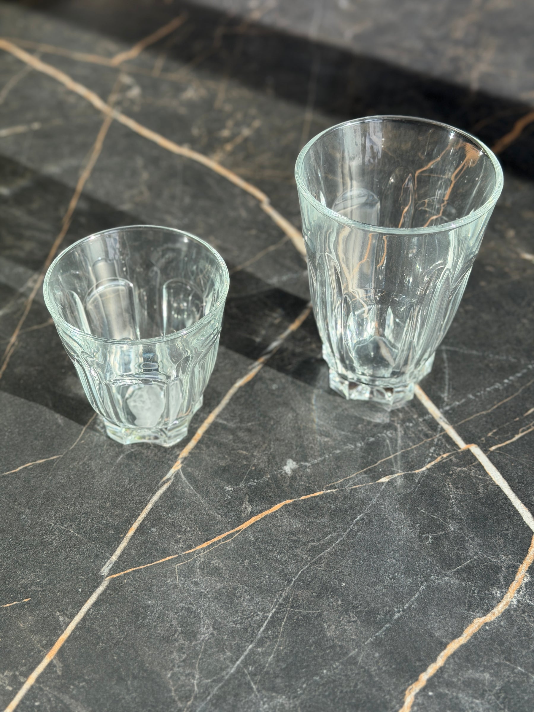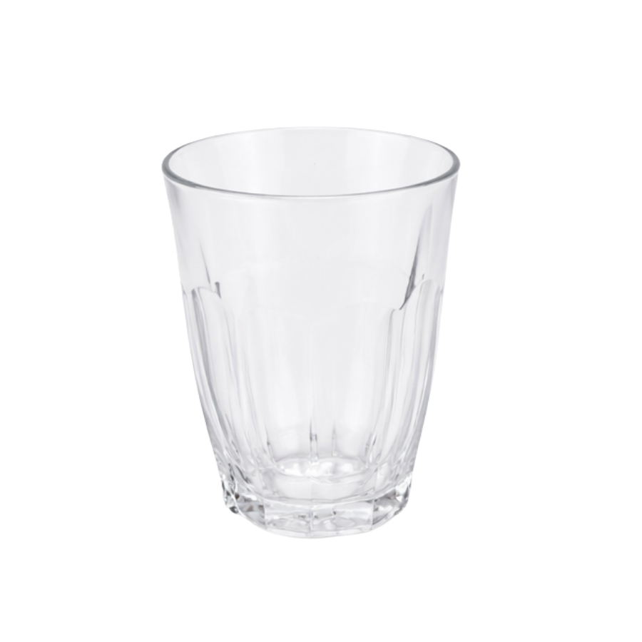 Det klare glas fremhæver drikkens farve smukt, mens de lodrette facetslibede detaljer skaber et smukt spil i lyset. Den let koniske form gør glasset ideelt til både vand, juice og andre kolde drikke i hverdagen. Med sin solide bund er det velegnet til daglig brug, samtidig med at det løfter helhedsindtrykket på spisebordet. Et alsidigt glas, der forener elegance og praktisk anvendelighed i ét enkelt design.