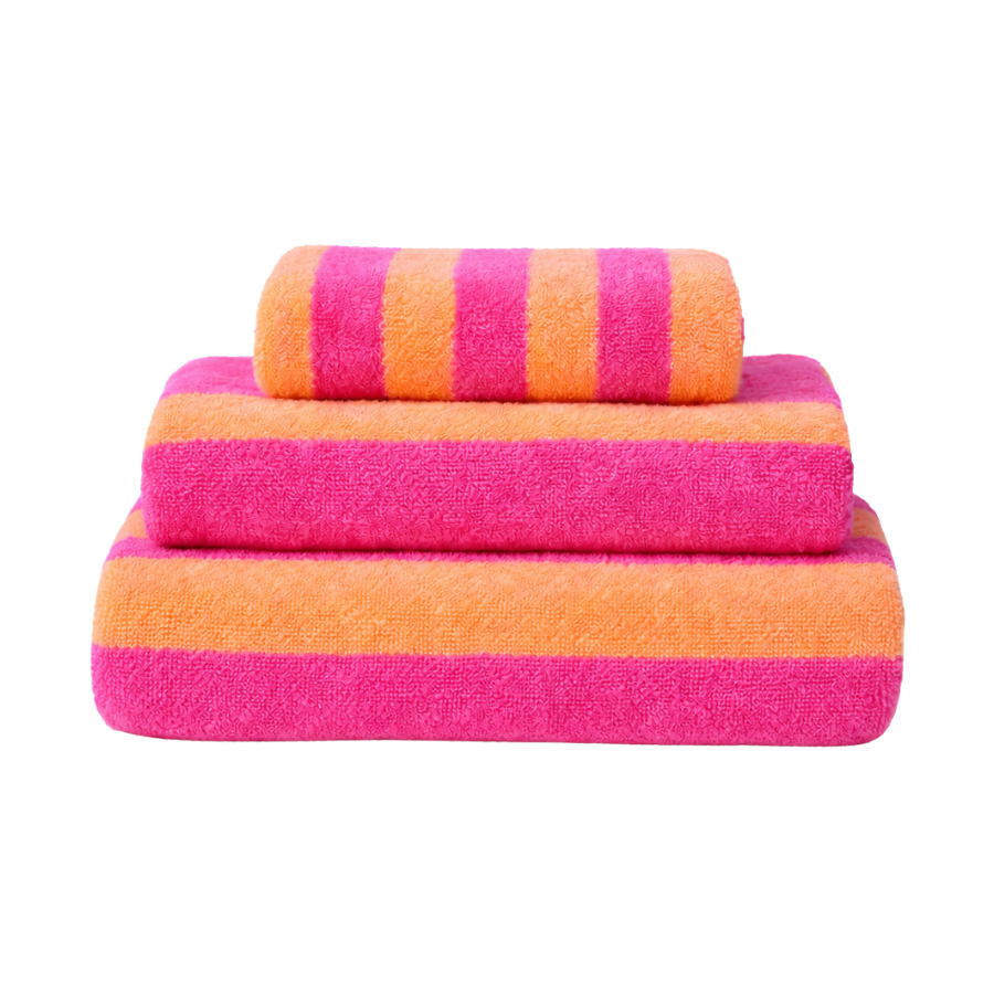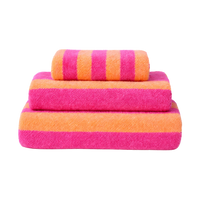 Badehåndklæde ANNI med striber i lyserød (70x140 cm) tilfører badeværelset et feminint udtryk med sit klassiske stribede design. Den bløde lyserøde nuance skaber en varm og indbydende stemning, der passer smukt ind i både moderne indretninger. Den generøse størrelse på 70x140 cm gør håndklædet ideelt til både bad, wellness og strandture. Perfekt til at mixe med andre tekstiler i samme farveskala eller som et friskt farvepift i et neutralt badeværelse.