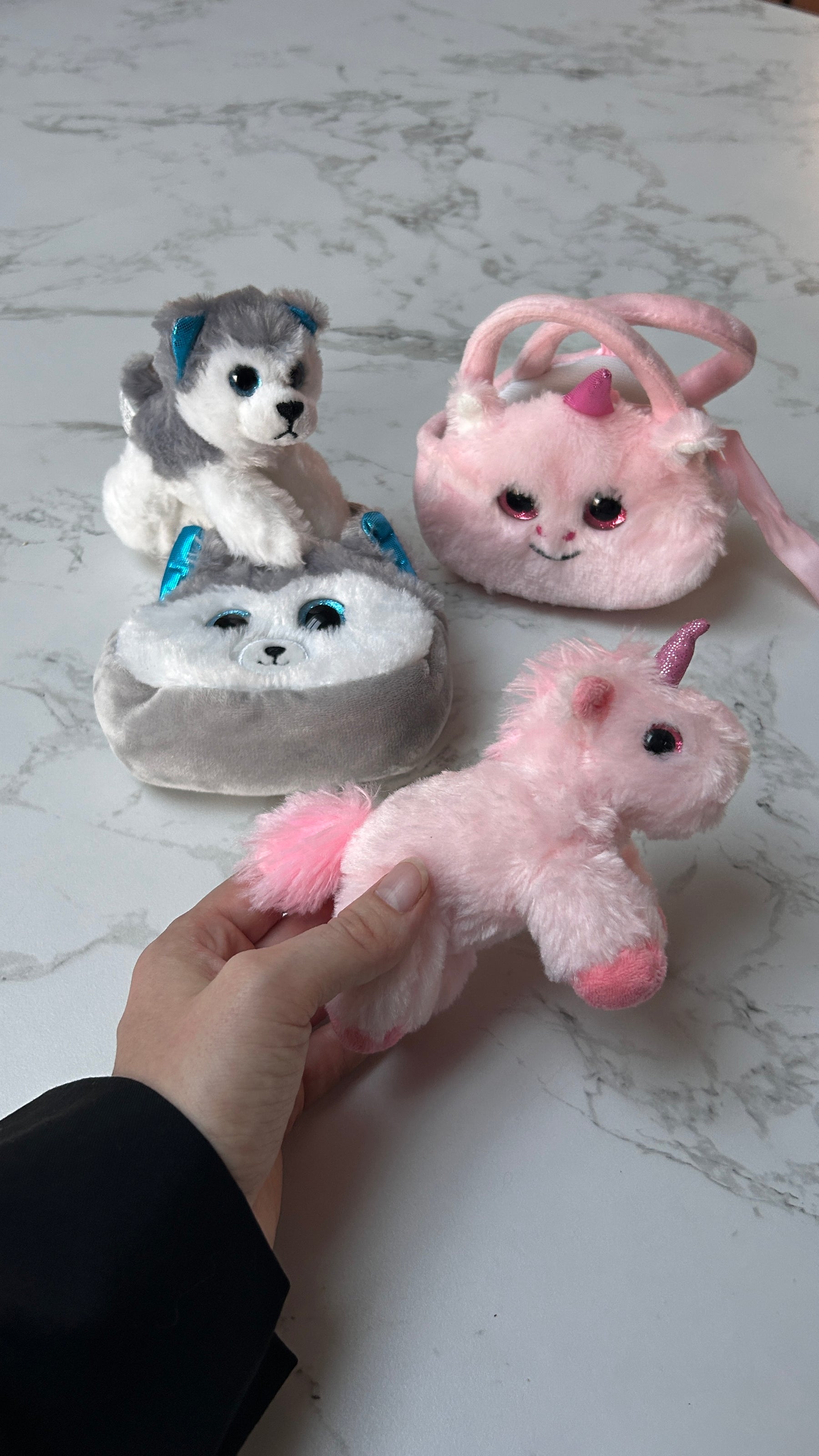 Plysdyr i taske er en sød og sjov gaveidé til børn, der elsker bløde bamser og leg. Hver taske indeholder et nuttet plysdyr med store, glimtende øjne og et matchende design. Perfekt til leg derhjemme eller på farten, hvor tasken gør det nemt at tage krammedyret med overalt. De bløde materialer og fine detaljer gør dem uimodståelige for små dyreelskere.