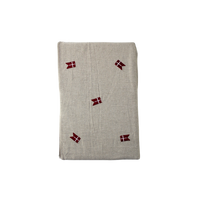 Tilføj en festlig stemning til din borddækning med denne dug, som er broderet med små fine Dannebrog. Dugen måler 140x320 cm, og passer dermed til mindre borde og særlige lejligheder som fødselsdage, og andre festligheder. Det broderede Dannebrog-motiv tilføjer et klassisk og elegant touch, der hylder danske traditioner.