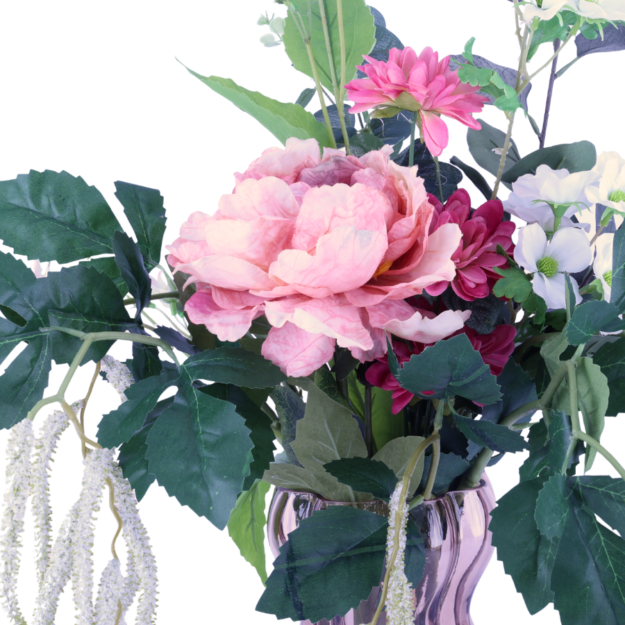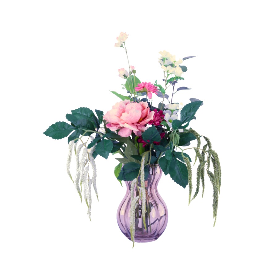 Evighedsbuket Lyserød Harmoni tilfører hjemmet et elegant og romantisk udtryk med sine bløde rosa nuancer og grønne detaljer. Den kunstige buket er sammensat med fokus på et naturligt look, hvor fylde, højde og lette fald skaber et harmonisk helhedsindtryk. Buketten kræver ingen pleje og bevarer sit smukke udtryk året rundt, hvilket gør den ideel til stuen, entréen eller spisebordet. En stilfuld løsning til dig, der ønsker blomster, der altid står perfekt.