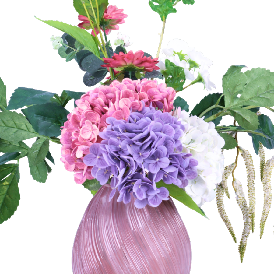 Evighedsbuket Forårsdrøm i Rosa og Lilla bringer en let og elegant stemning ind i boligen med sine bløde nuancer og harmoniske farvespil. De rosa og lilla blomster skaber et feminint og friskt udtryk, som smukt balanceres af grønne elementer, der giver buketten et naturligt og luftigt look. Den kunstige evighedsbuket er sammensat med fokus på fylde og variation i højden, hvilket giver et levende helhedsindtryk. Perfekt som dekorativ detalje på spisebordet, i entréen eller på en skænk, hvor den tilfører rummet lys og lethed.