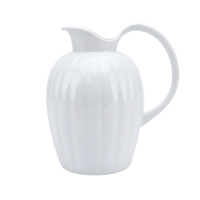 Georg Jensen Bernadotte i Hvid Porcelæn Kande 1,2L er en elegant kande, der passer ind i mange typer borddækning. Det klassiske design med de karakteristiske riller er inspireret af Bernadotte-serien og giver et enkelt og tidløst udtryk. Kanden er fremstillet i hvidt porcelæn og har en kapacitet på 1,2 liter, hvilket gør den velegnet til servering af vand, juice eller andre drikke. Den praktiske hank sikrer et godt greb, og den formede hældetud gør det nemt at hælde. Kanden kan bruges alene eller kombineres med andre dele fra samme serie for et sammenhængende udtryk på bordet. En funktionel løsning til både hverdag og servering.