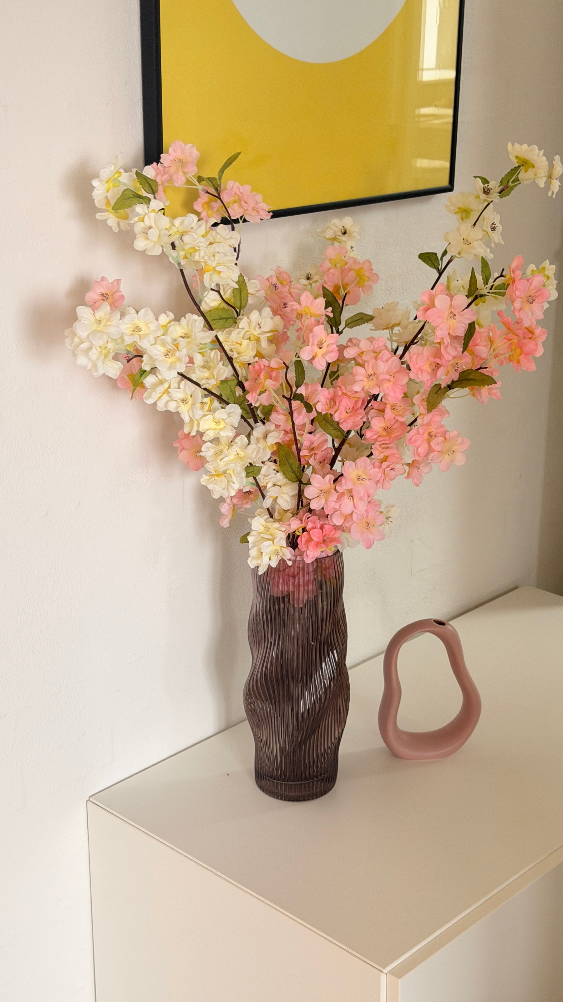 Skab et moderne og stilfuldt udtryk i dit hjem med den elegante glasvase ANJO. Vasen er fremstillet i gråt glas og har en dynamisk bølgeformet struktur, som giver et spændende spil i lyset og tilfører rummet karakter. Den høje, slanke form gør den ideel til både friske blomster, dekorative grene eller som en selvstændig skulpturel detalje i indretningen. Med en højde på 30 cm er ANJO et blikfang, der passer perfekt ind i både minimalistiske og mere personlige hjem.