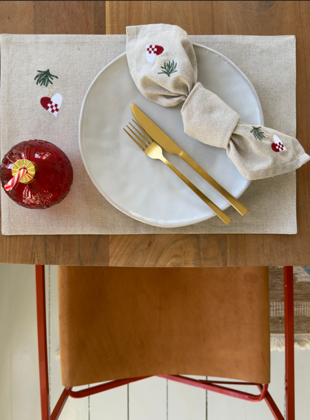Juledækkeserviet m. Hjerte Broderi (30x45cm) bringer et strejf af klassisk dansk jul til borddækningen. Den naturfarvede tekstil med fint broderet hjerte og grønne grangrene skaber et udtryk, der passer til julemiddage. Den bløde struktur og enkle farve gør den nem at kombinere med både røde, grønne og neutrale nuancer, så du kan skabe din helt egen julestil. En smuk og tidløs dækkeserviet, der forener tradition og enkelthed - ideel til at fuldende julens bord med et elegant udtryk.