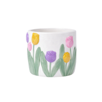 Mini Krukke m Blomst GALIN (Ø 11,3x10,4 cm) er en dekorativ urtepotteskjuler, der tilfører hjemmet et friskt og feminint udtryk. Det fine blomstermotiv i bløde nuancer af gul, lilla og rosa skaber en let og indbydende stemning, som passer perfekt ind i både moderne og romantiske indretninger. Den kompakte størrelse gør krukken ideel til små grønne planter, krydderurter eller som en dekorativ detalje på hylden, i vindueskarmen eller på natbordet.