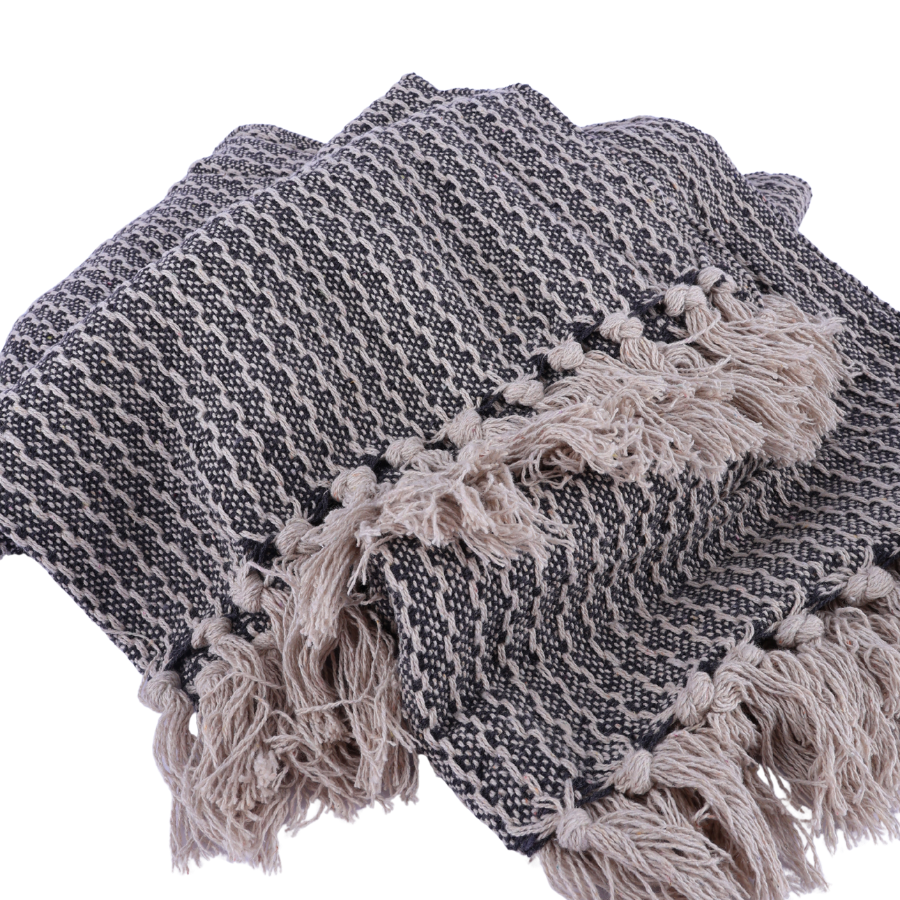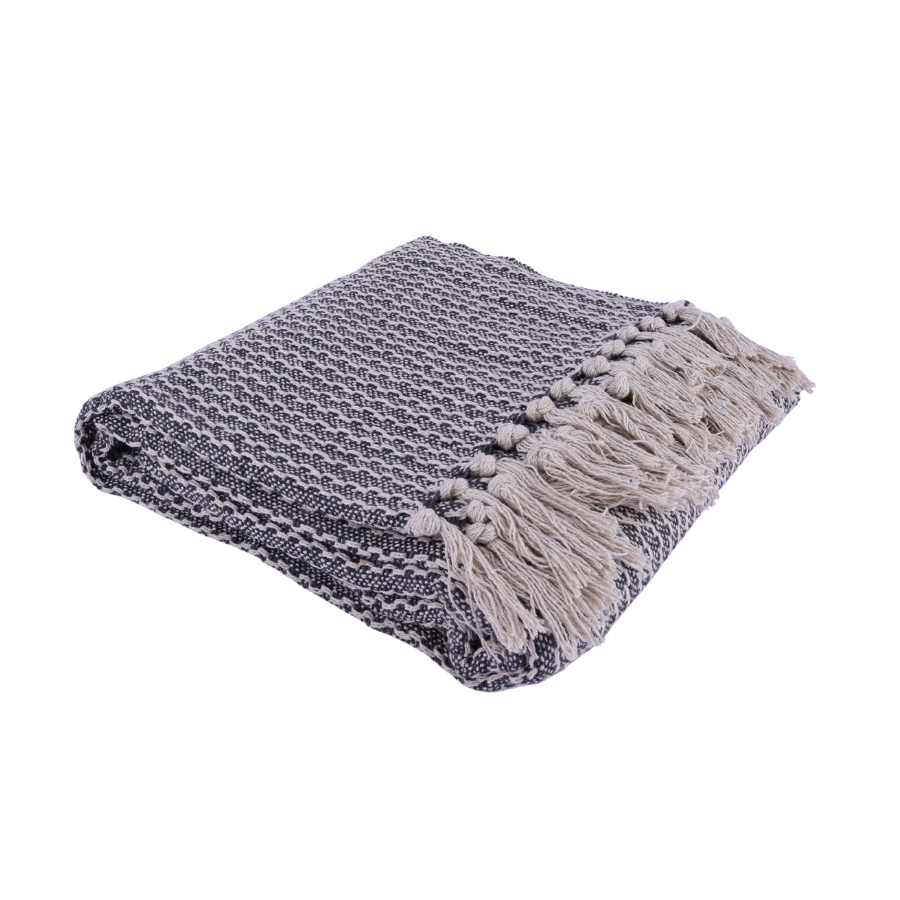 Plaid Cort i bomuld i mørkegrå og hvid er en stilren tekstil, der tilfører elegance til indretningen. Det diskrete mønster og de bløde frynser giver et tidløst udtryk, som passer perfekt ind i både moderne og klassiske hjem. Den lette bomuldskvalitet gør plaiden behagelig at bruge i sofaen, på lænestolen eller som et dekorativt lag på sengen. Farvekombinationen i mørkegrå og hvid skaber en smuk kontrast, der nemt kan kombineres med andre tekstiler og nuancer i rummet.