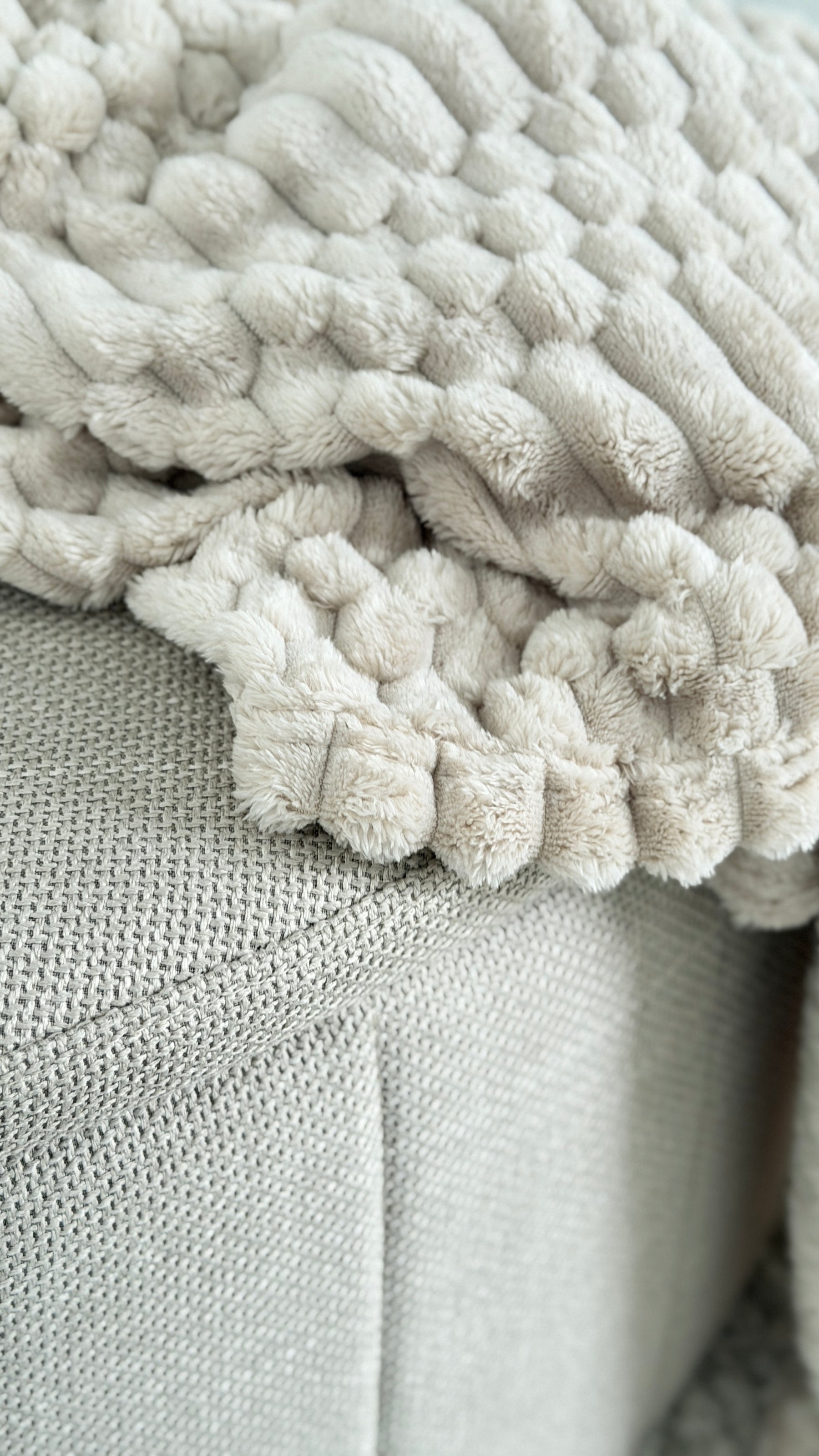 Indfør en følelse af varme og hygge i dit hjem med dette smukke plaid i imiteret pels. Den bløde tekstur inviterer til afslapning og skaber en indbydende atmosfære i ethvert rum. Plaidens sandfarvede nuance komplementerer en bred vifte af indretningsstile.