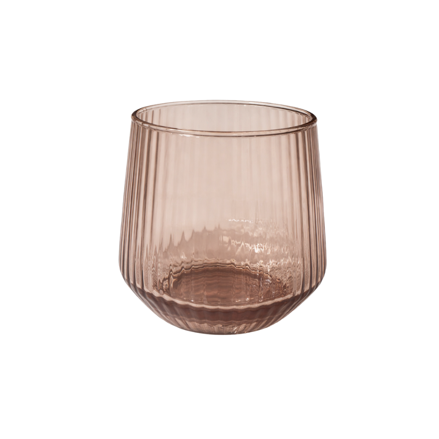 Vandglas METTI i brun er et stilfuldt valg til dig, der ønsker at tilføje varme og dybde til din borddækning. Det riflede glasdesign giver et elegant spil i lyset. Den brune nuance tilfører karakter og er nem at kombinere med naturlige materialer som træ, keramik og linned. Med en kapacitet på 380 ml er glasset ideelt til både vand, juice og andre kolde drikke, mens den afrundede form sikrer en behagelig fornemmelse i hånden.