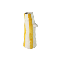 Villa Collection Whimsy vasen tilfører et strejf af farve og elegance til dit hjem. Den gule stentøj skaber en varm og indbydende atmosfære, perfekt til at fremvise dine yndlingsblomster eller stå alene som et dekorativt element. Vasens enkle design med et lille næb og øjenvippe gør den let at integrere i forskellige indretningsstile, fra det moderne til det mere klassiske. Den er ideel til at skabe et personligt udtryk i stuen, på spisebordet eller i entréen. Lad vasen være et blikfang, der spreder glæde og liv i dit hjem.